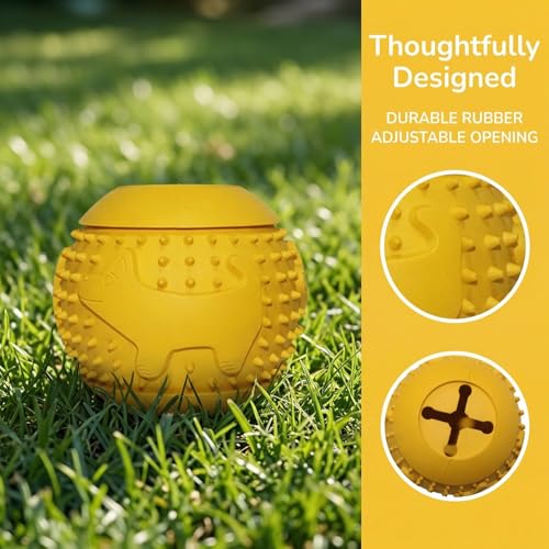 Support interactive feeding and chewing in the garden with this treat-dispensing dog toy. Made from non-toxic natural rubber, the ball combines a treat dispenser with a soft chew surface to help clean teeth while dogs or cats play. The adjustable opening lets you control treat size and frequency of reward, keeping animals engaged during fetch, chase or independent chewing.