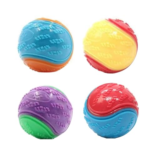 Lightweight squeaky chew balls for puppies, a four-piece colourful set made from durable TPR that floats. Textured surfaces aid dental cleaning while providing interactive play to relieve boredom and anxiety.