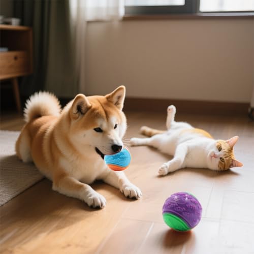 These interactive dog balls are a set of four squeaky dog toys designed for puppies and dogs who enjoy chewing, fetch and training. As a dog toy pack they offer sound and movement to keep playtime engaging, making them useful for relieving boredom and easing mild anxiety through active interaction.