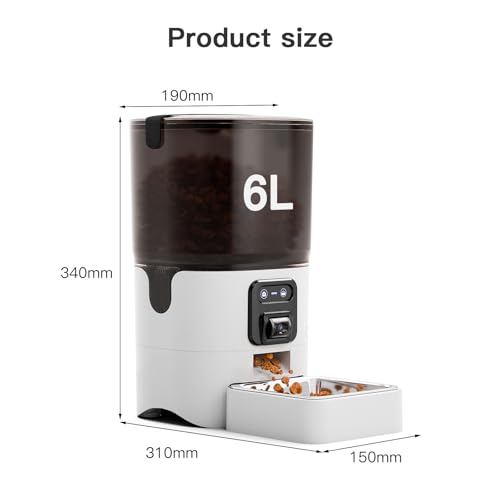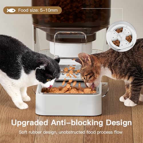 Cleaning is simple: the removable stainless steel bowl is dishwasher-safe. The large 6L hopper suits multi-pet homes and non-slip feet and an anti-clog system keep feeding reliable.