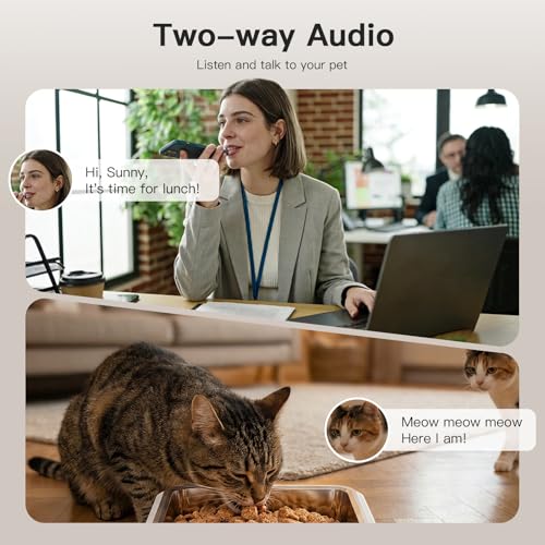 - 1080P HD camera with night vision and two-way audio – watch and reassure your cat in real time with approach alerts