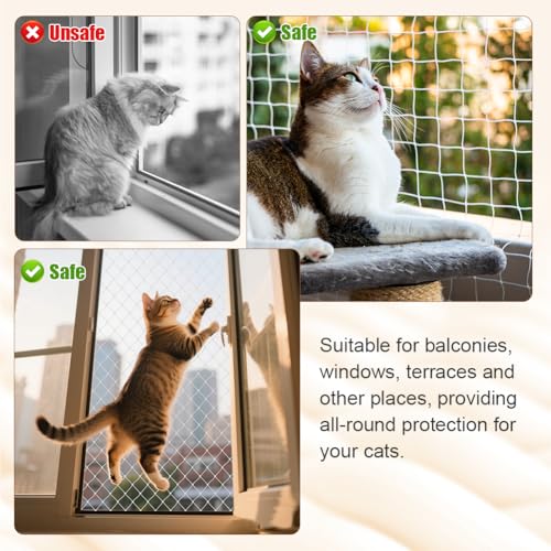 Yes, the 4 x 3m single-strand nylon net prevents falls on balconies and windows. The 3x3cm mesh keeps airflow and an unobstructed view while securing cats.