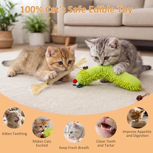 The plush caterpillars are made from bite-resistant plush with reinforced stitching, so they stand up to tossing and batting during interactive play. The silvervine sticks are 100% natural and textured to help scrape away tartar and plaque as your cat chews, which can reduce bad breath and make daily oral care easier. This set suits kittens during teething as well as adult and senior cats that need stimulation or stress relief from indoor life.