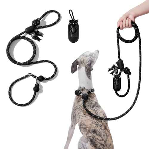 Built for control and visibility, the rope body includes reflective thread for safer early morning or evening walks. A double-limit no-pull system uses a stopper and a safety buckle to reduce overtightening and help prevent escape, while strong construction copes with powerful tugs. The set includes a poo bag dispenser and a decorative silicone bow charm, and the water-resistant rope and silicone wipe clean easily.