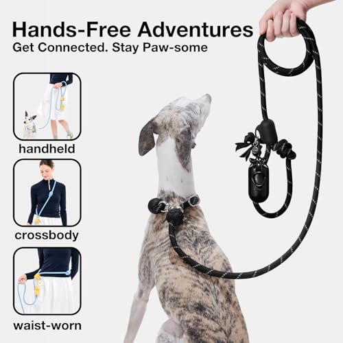 This hands-free dog lead is designed for medium and large dogs, letting you walk, run or hike without holding a traditional leash. Wear it as an adjustable waist belt or as a crossbody lead to keep your hands free while staying securely connected to your dog. The lead works head-to-tail or clipped to a harness or collar for flexible handling.