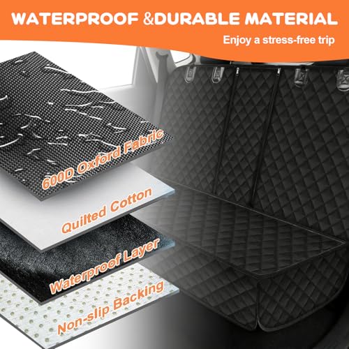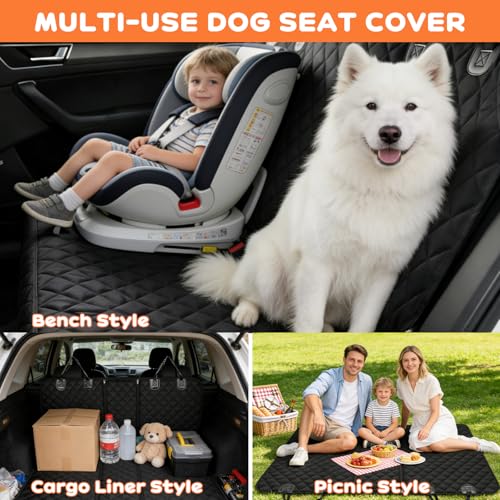 VidFair waterproof back seat cover protects car upholstery when travelling with a dog, offering non-slip, scratch-proof protection and easy cleaning. Its universal fit converts to a bench cover or trunk liner for versatile transport use.