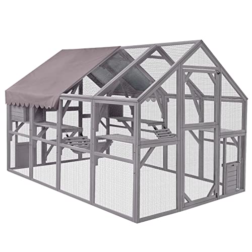 Looking for a secure way to give your cat outdoor enrichment and reduce boredom while keeping them contained? This walk-in wooden cat enclosure works as a catio that encourages climbing, exploration and sunbathing while giving you clear sightlines through wire mesh. The fully open front door makes it simple to enter, interact and supervise without letting your cat escape.