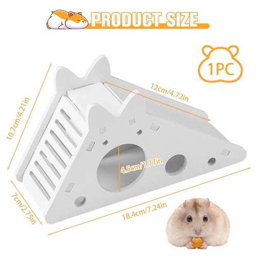 Wooden hamster house and hideout for hamsters and other small animals, providing a snug, breathable retreat for resting and hiding. Its built-in ramp offers climbing play to help balance and mental stimulation while being chew-friendly.