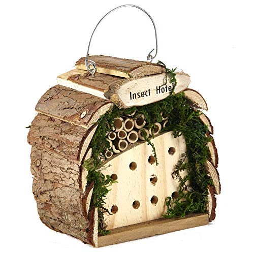 Attract bees, ladybirds and other beneficial insects with a compact insect hotel designed for hanging in the garden. This natural wood insect and bee hotel creates sheltered cavities where solitary insects can nest or rest, helping to support pollination of your flowers and trees. It doubles as a decorative habitat that can be hung on a fence, shed or branch to increase wildlife activity close to flowering plants.
