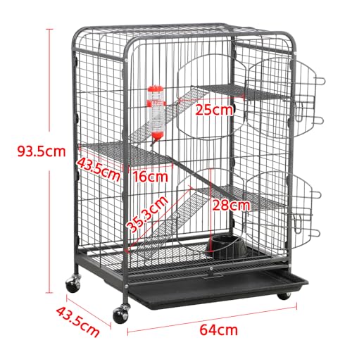 Measures 64 cm L x 44 cm W x 94 cm H, offering extra-large horizontal and vertical space across four tiers suitable for housing several small animals.