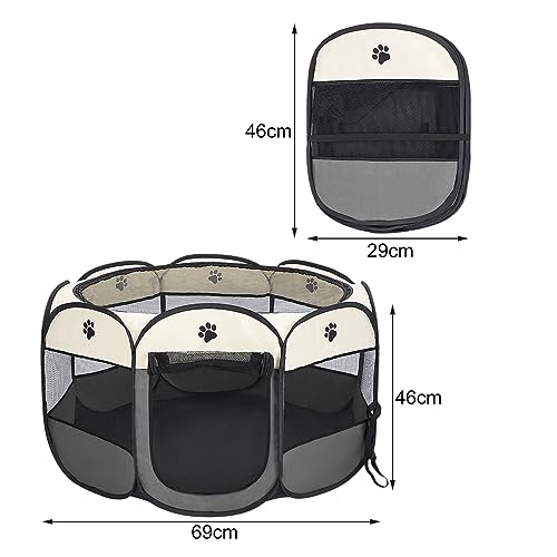 Soft fabric portable pet playpen for puppies, kittens and small animals such as rabbits, hamsters and guinea pigs, offering a spacious 74 x 74 x 43cm indoor and outdoor play area that folds for easy storage and travel.