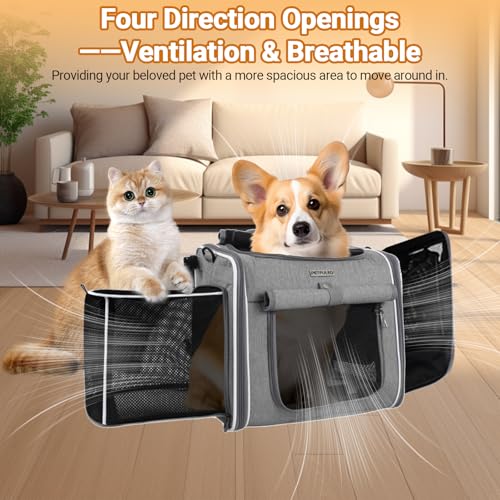 Ideal for travelling, camping, vet visits and park walks. The carrier is portable, foldable and provides breathable, cushioned space for small dogs or medium cats during outings.